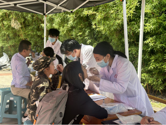 本次义诊内容包含免费口腔健康咨询、专家初步诊断及个性化健康指导,发放口腔宣教图册,一对一制定填写口腔检查表,免费提供血压检测,提供耳穴、刮痧等中医特色治疗。活动现场,医护人员向师生普及了龋病、牙周病等口腔疾病的相关知识,宣传口腔日常清洁护理及保健常识,倡议广大师生爱牙护齿,健康生活。